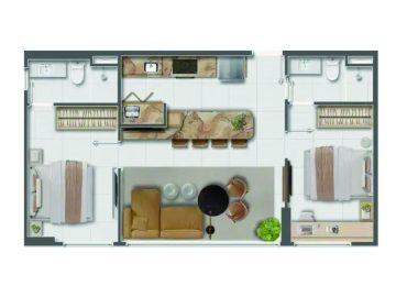 Com 46m² inteligentemente distribuídos, este imóvel apresenta 2 dormitórios, sendo 1 suíte, proporcionando privacidade e bem-estar. A sala é um convite ao relaxamento e convívio, enquanto a cozinha funcional atende às necessidades do dia a dia. Além disso, conta com 1 banheiro social e 1 vaga de garagem.