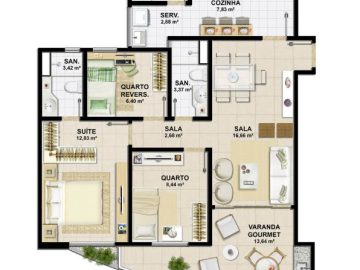Se você precisa de um lugar tranquilo para estudar ou trabalhar, o condomínio oferece uma sala de estudos. Os amantes de esportes podem aproveitar a quadra poliesportiva. A segurança é garantida pela portaria 24 horas.